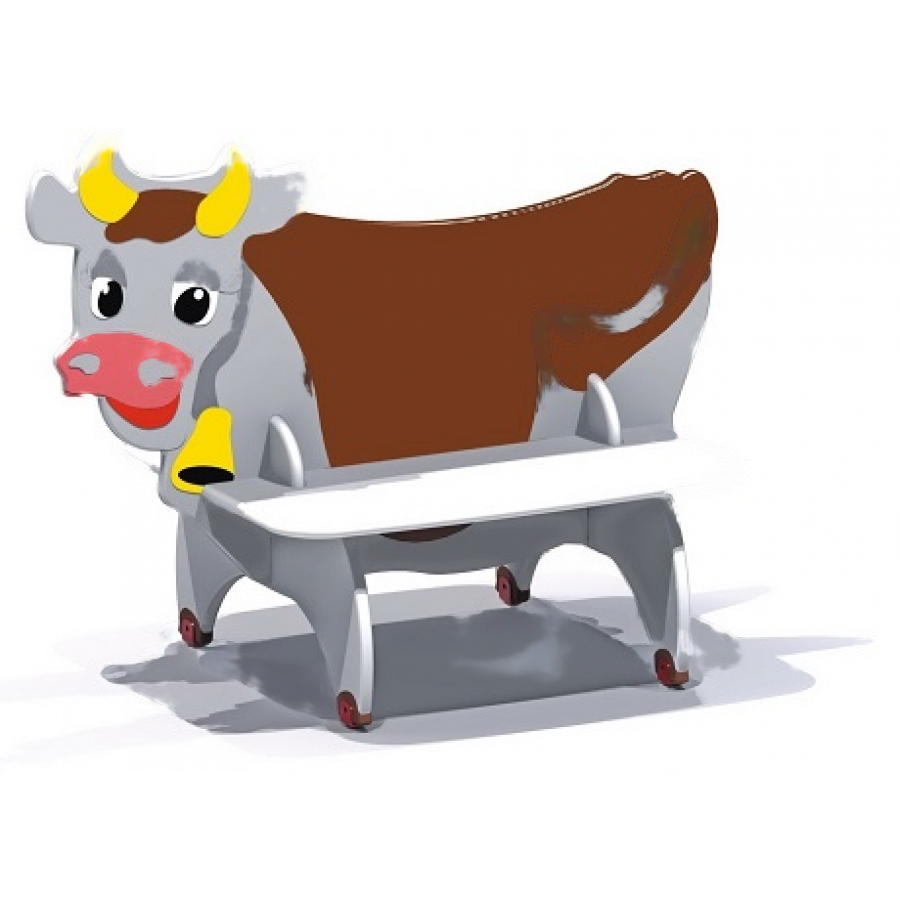 2-хсторонняя скамья с декоративной перегородкой выполнена в виде коровы. Детали с закругленными углами соединяются через пазы. 4 опоры дополнены металлическими подпятниками. Посадочных мест 2.