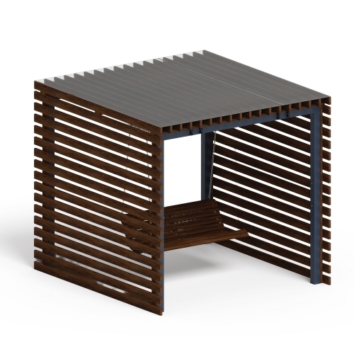 Представляет собой перголу с двухместными качелями и плоской поликарбонатной крышей. В боковых частях расположены ограждения.