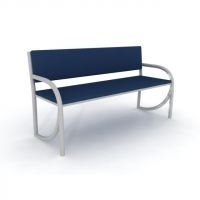 Диван-скамейка для медицинских кабинетов или коридоров располагает мягким сиденьем и спинкой, металлическим каркасом. Дугообразные подлокотники переходят в поддерживающий элемент для опор. Между прямоугольными элементами спинки и сиденья соблюдается расстояние, которое по желанию заказчика заполняется металлической вставкой с перфорацией.