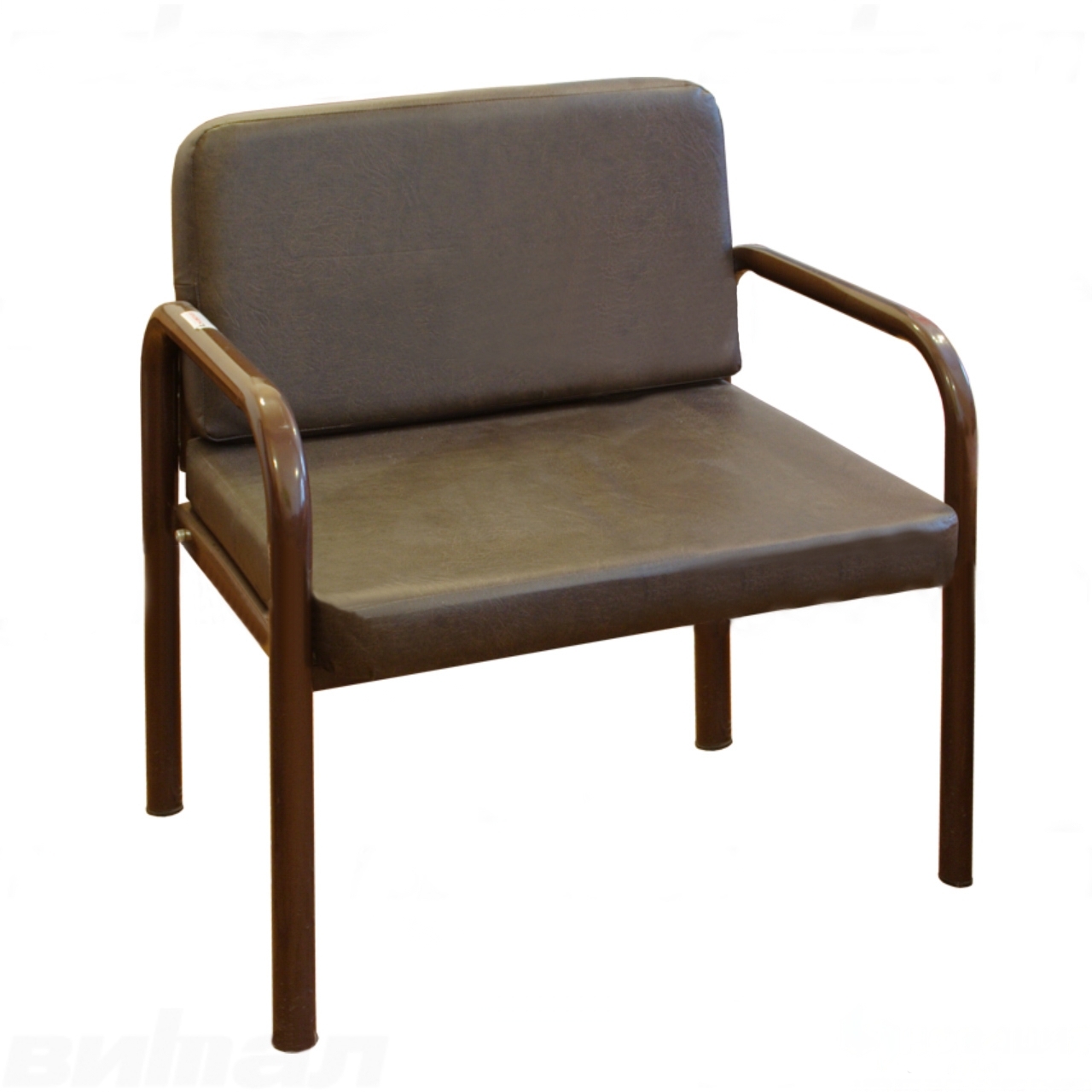 Широкое прямоугольное полумягкое сиденье позволяет с комфортом расположиться между двумя удобными подлокотниками. Невысокая полумягкая спинка поддерживает осанку. 4 ножки придают устойчивость мощной конструкции на разборном нерегулируемом металлическом каркасе. Покрытие каркаса — порошковое, полимерное, термооплавляемое. Сиденье и спинка закрепляются при помощи саморезов.