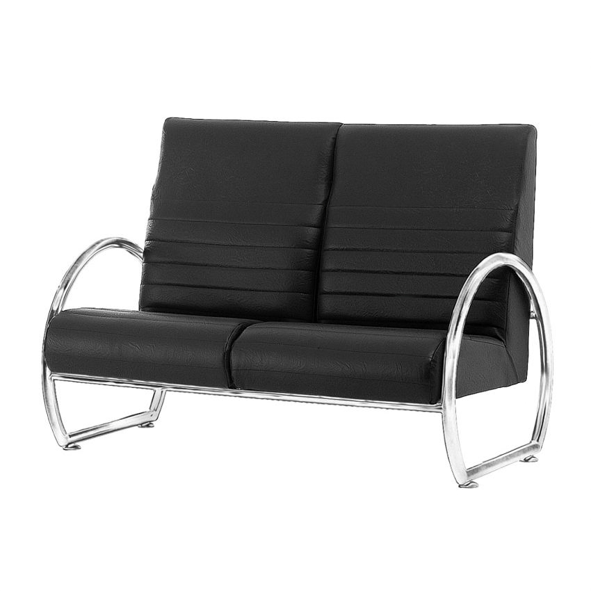 2-хместное кресло состоит из 2-х элементов сиденья, 2-х элементов спинки и металлических подлокотников. Обивка выдерживает не менее 50000 циклов истирания. Дугообразные подлокотники переходят в хромированные опоры с полозьями и подпятниками.