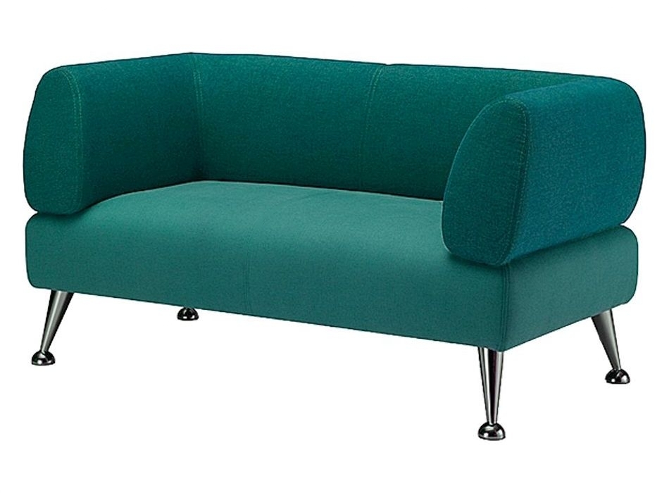2-хместный диван с мягкой спинкой и подлокотниками стоит на высоких опорах. Обивка выдерживает 100000 циклов истирания. 4 хромированные ножки оснащены подпятниками.