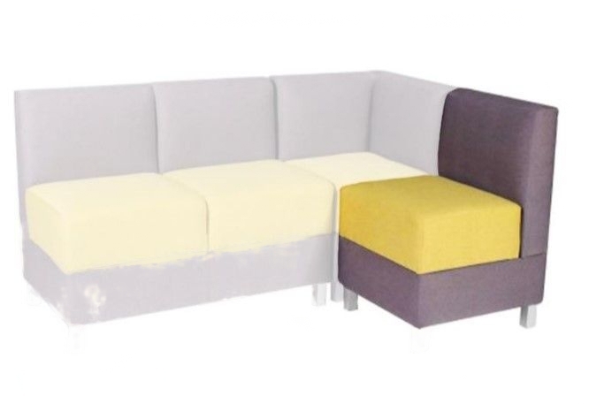 Одноместная секция без подлокотников используется в качестве кресла или составляющей модульного дивана. Материал обивки подходит для влажной уборки.