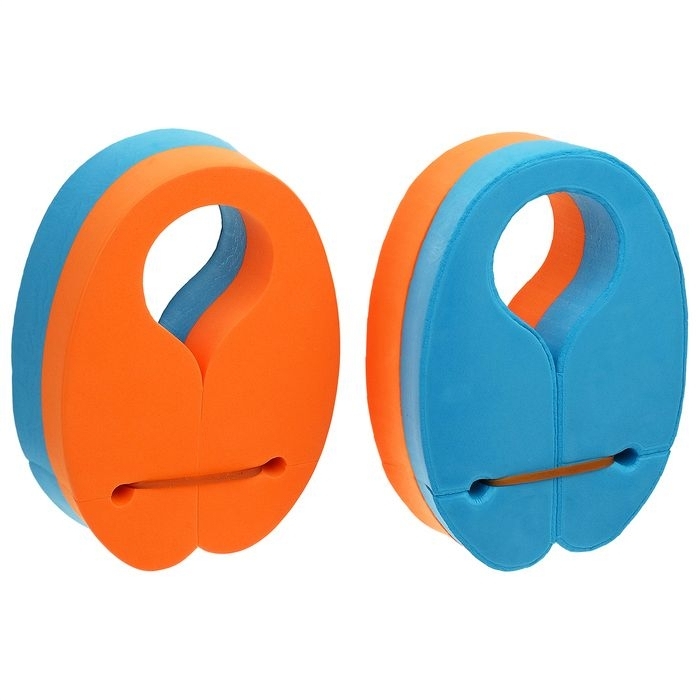 Пара пенопластовых нарукавников удерживает начинающего пловца на поверхности воды. Инвентарь подходит для аквааэробики, водной терапии. Допустимо применение в открытых водоемах. Фиксация на предплечье не ограничивает движения.