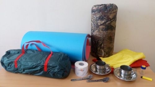 - 2 складных комплекта столовых приборов: вилка, ложка и нож-открывалка,