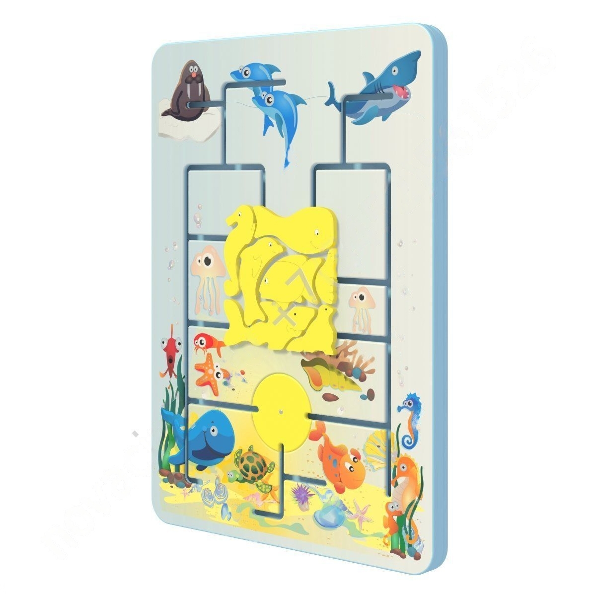 Дидактическая панель поможет запомнить названия обитателей океана. Осьминог, дельфины, морские коньки, акулы, черепаха и другие объекты представлены в виде цветных рисунков и монохромных фигурок. Нужно провести каждую фигурку по веткам лабиринта, чтобы она оказалась возле подходящего изображения. Сортировка положительно влияет на память, фантазию, логику, мелкую моторику.