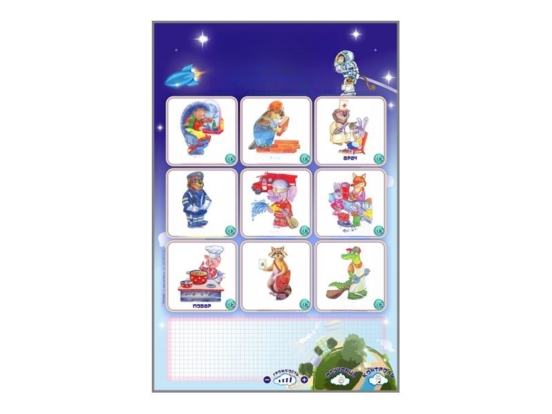 Представляет собой маркерную сенсорную панель с активными ячейками, отображающими основные профессии. Для изучения дети касаются интересующей их профессии, затем "Виртуальный воспитатель" повествует о характерных особенностях, важности и роли данной профессии в обществе.