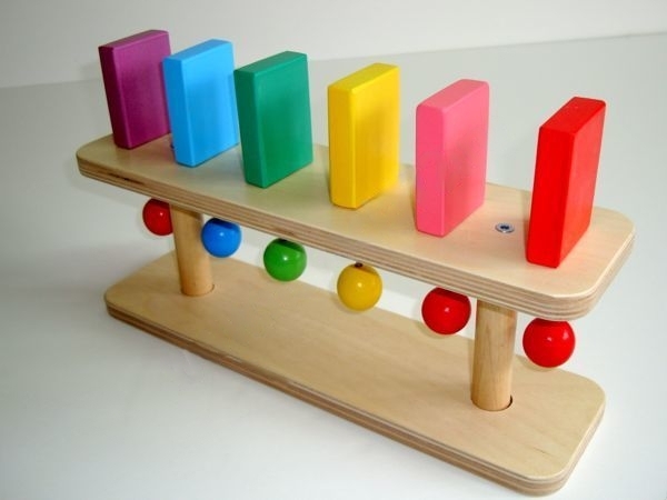 На прямоугольной панели расположены 6 разноцветных фишек домино и 6 шариков. Развивает мелкую моторику и тактильное восприятие. Может использоваться для изучения цветов.