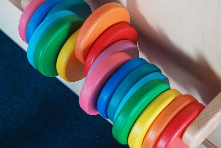 На тактильной панели есть стойка с разноцветными кругами. Способствует развитию мелкой моторики и осязательных навыков. Может использоваться в качестве дидактического материала для изучения цветов.