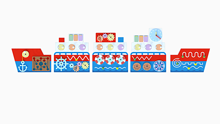 Фигурная панель соответствует ФГОС ДО. Выполнена в форме корабля. Подходит для профориентации. 5 отдельных секций задействуются во время групповых занятий. Бизиборд оснащен шестеренками, окошками, лабиринтом, круговыми элементами, винтами, тактильной дорожкой, декоративным якорем, карточками и циферблатом. Покрытие поверхностей гипоаллергенно.