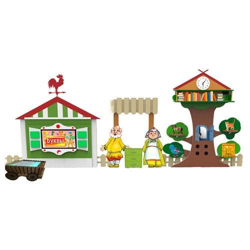 1. Стилизованные модули композиции: «Казачий курень», «Телега», «Дерево» и «Заборчик».