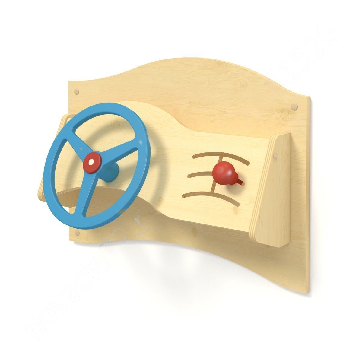 На дидактической панели размещена имитация коробки передач и руля автомобиля. Элементы пригодятся во время сюжетно-ролевой игры или занятий на развитие тактильных ощущений, координации движений.