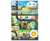 Оформление соответствует городской тематике. Ребенок познакомится с видами транспорта, дорожными знаками, узнает о службах спасения.