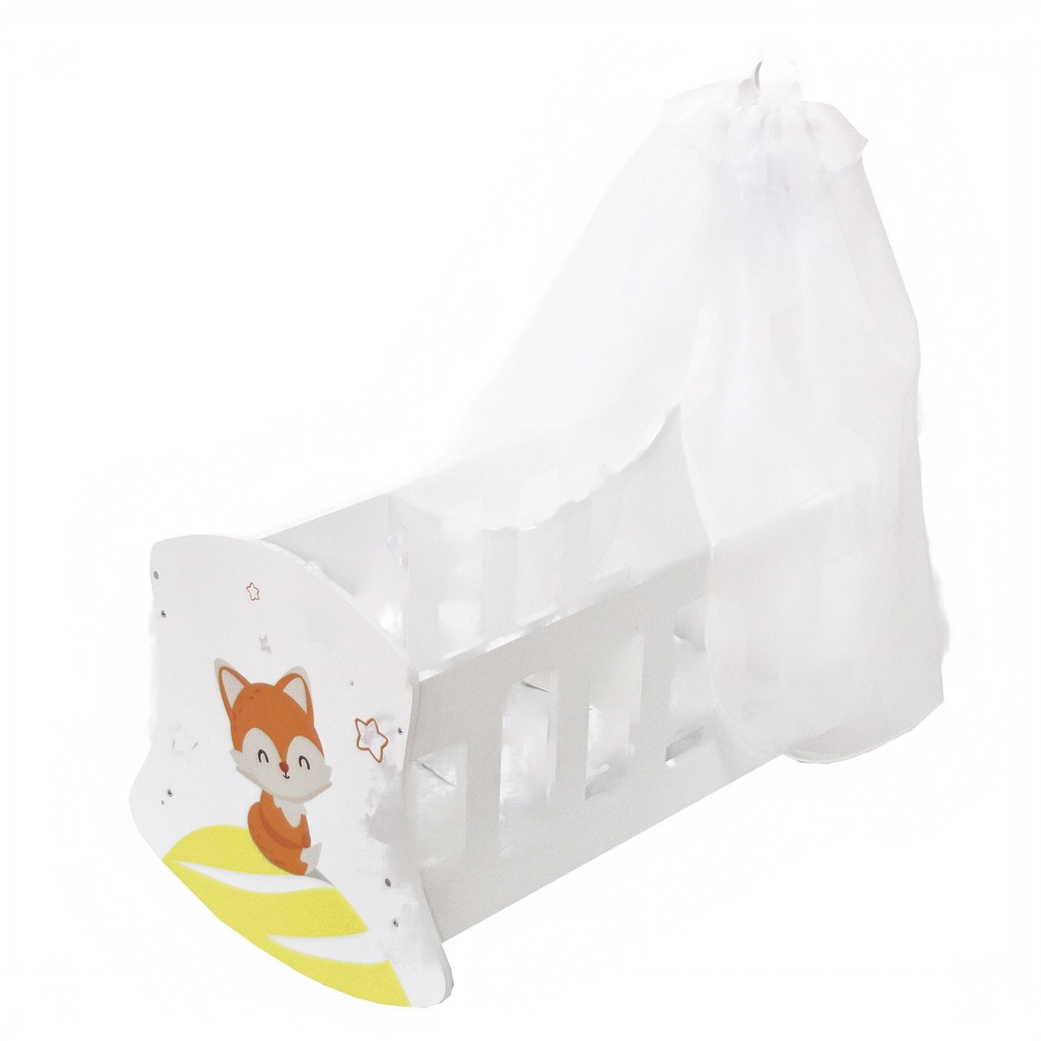 Поставляется в разобранном виде с инструкцией по сборке прилагается. В комплект также входят балдахин и постельное бельё: матрас, подушка и одеяло. Бортик люльки декорирован полноцветным рисунком. Люлька подойдёт для сюжетно-ролевых игр с куклами высотой до 45 сантиметров.