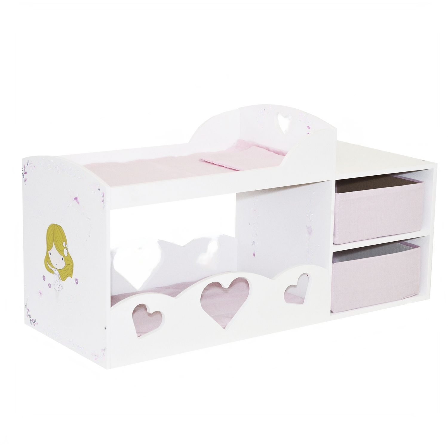 Двухъярусная кровать для кукол имеет два спальных места. В боковой части кровати размещены два ящика для хранения игровых аксессуаров. В комплект входит постельное бельё: матрасы, подушки и одеяла. Мебель подойдёт для сюжетно-ролевой игры с куклами, поможет в развитии воображения и мелкой моторики.