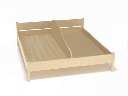 2-хместная кровать с прямоугольным изголовьем стоит на 4-х ножках. Спальные места расположены на одном уровне, отделены фигурной перегородкой. Каждое ложе с 4-х сторон окружают бортики.