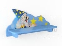 Полка состоит из фигурной панели для крепежа к стене и горизонтальной поверхности. Углы закруглены. Панель украшена рисунком.