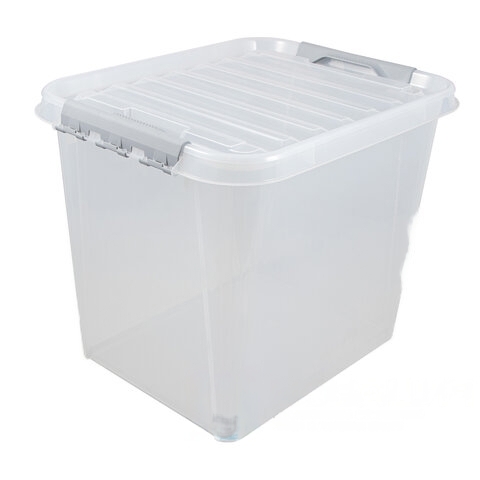 Ящик - контейнер 50л с КРЫШКОЙ НА ЗАЩЕЛКАХ "ПРОФИ" 40х50х39см штабелируемый ПРОЧНЫЙ прозрачный, 796, 437960000
