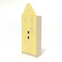 Над дверцами резной декоративный элемент (крыша). Створки оснащены парными прорезями для открывания.