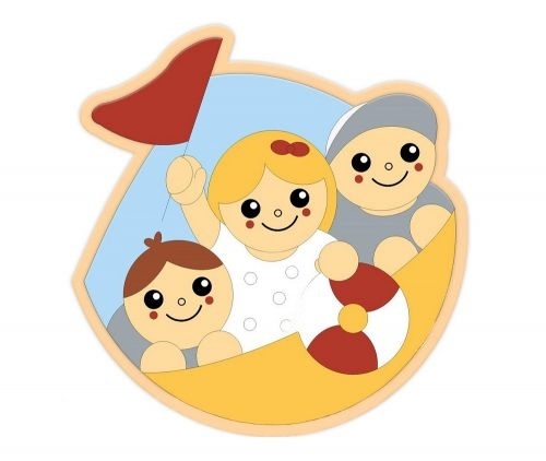 Плоская декорация с изображением детей в лодке крепится к стене в ДОУ.