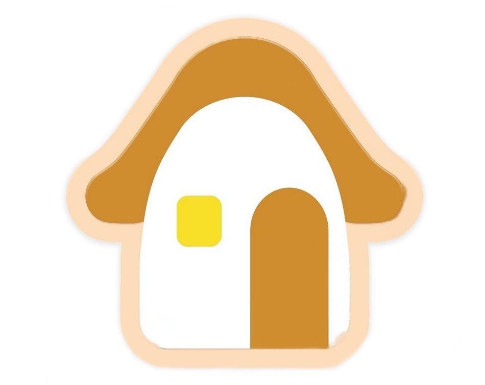 Декорация с изображением домика выделяется на фоне стены или мебели в ДОУ.