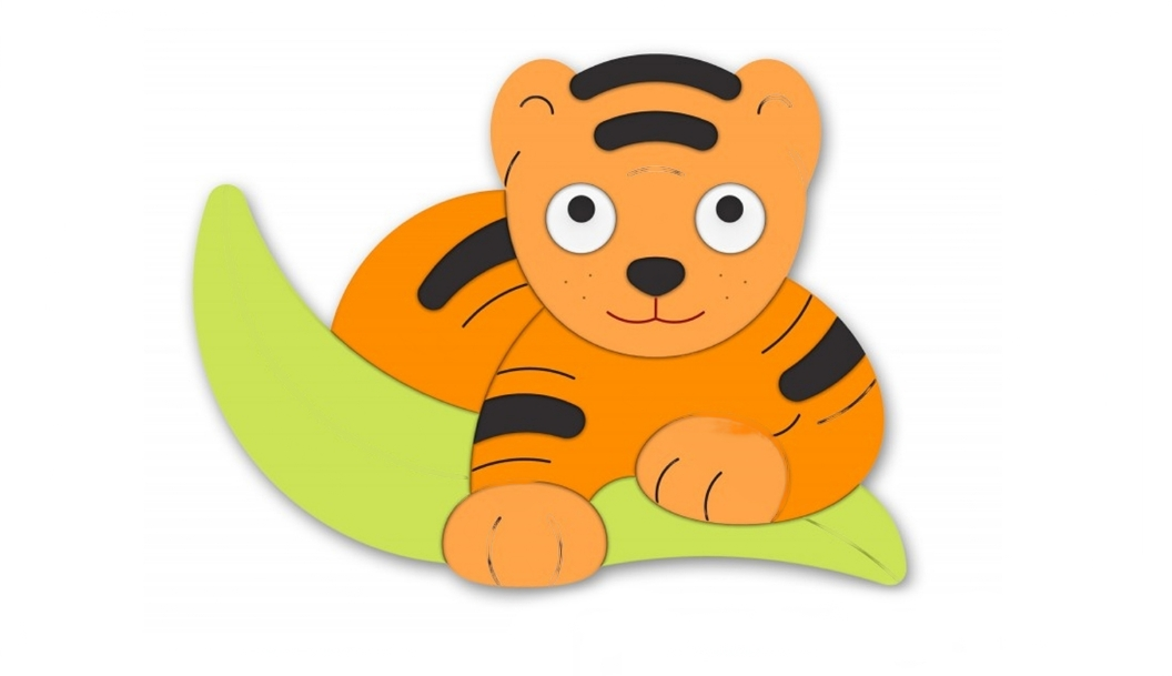 Декорация в виде тигренка, сидящего на траве, подойдет к интерьеру детского сада.