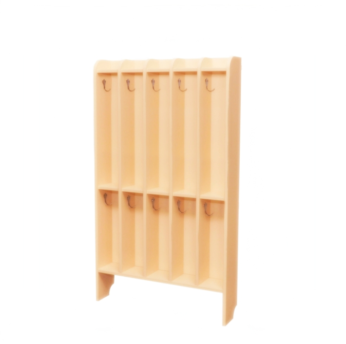 Двухъярусная вешалка для полотенец размещается в туалетных комнатах ДОУ. В 5-ти секциях внизу и вверху устанавливаются металлические крючки, на них можно повесить 10 полотенец.