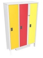 Прямоугольный корпус с цветными одностворчатыми дверями оснащается отдельными секциями, в каждой из которых по 2 полки. Отделения предназначаются для спортивной формы, аксессуаров, экипировки, головных уборов.