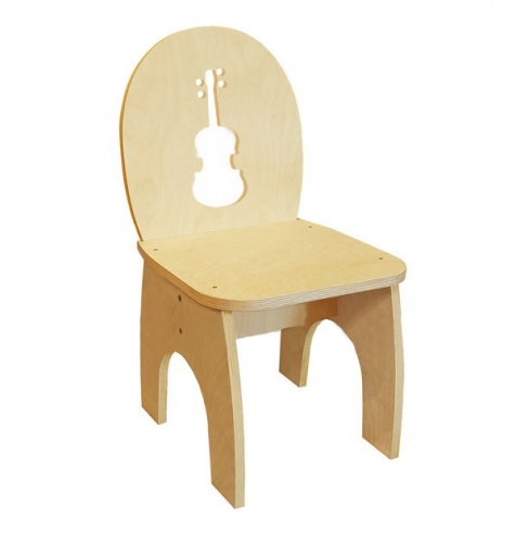 Стул выполнен из фанеры и покрыт лаком в 2 слоя. Спинка украшена резным рисунком скрипки.