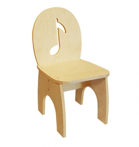 Стул из фанеры и покрывается лаком в 2 слоя. Спинка украшена резным рисунком ноты.