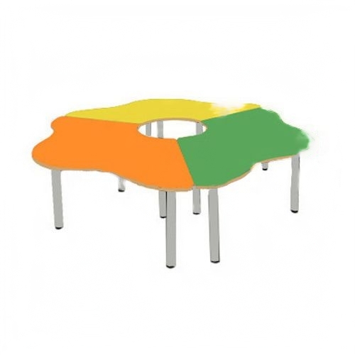 Стол для ДОУ состоит из 3-х отдельных столиков (лепестков). Каждый оснащен 4-мя регулируемыми по высоте ножками. Столешницы с волнообразными краями выглядят ярко и оригинально. Это прекрасная мебель для ДОУ из нетоксичных материалов.