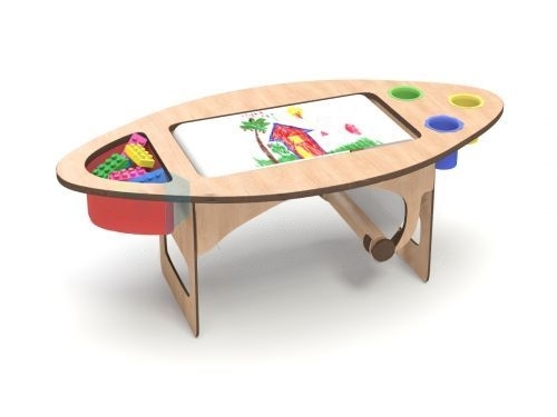 На поверхности стола размещается бумага для рисования. Для удобства рулон бумаги и край листа закрепляются под столешницей.