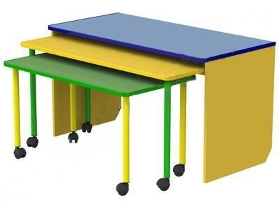 Материал изготовления: Ламинированное ДСП, Кромка ПВХ (2мм). Компактный многофункциональный модуль с выкатными столами предназначен для развивающей деятельности со стационарным тумбой-столом и двумя столами которые помещаются внутри тумбы-стола. Каждый стол предназначен для 2 детей, благодаря разной размерности столов можно использовать их для детей разного роста. Колеса оснащены специальными стопорами для предотвращения произвольного движения. Такой модуль удобно использовать в небольших помещениях для экономии пространства игровой зоны в дошкольных образовательных учреждениях.