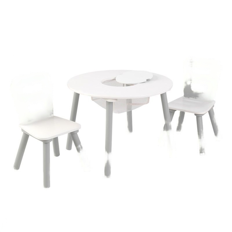 Стол оснащён системой хранения, в которой можно расположить игрушки и материалы для творчества.