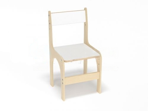 Детский стул регулируется по высоте. Спинка прямоугольная. Края передней стороны сиденья скруглены.