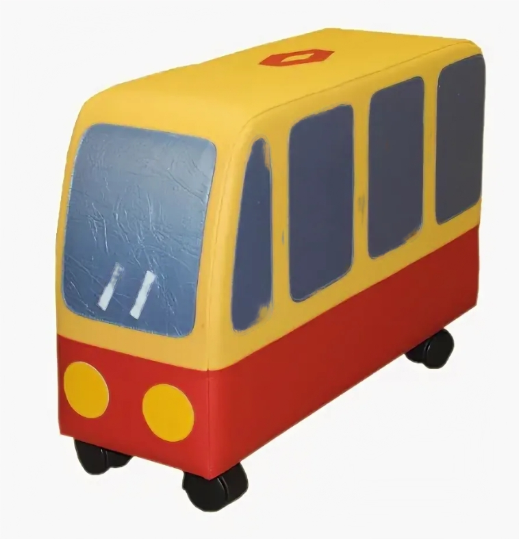 Каталка изготовлена в виде трамвая. Оснащена 4 колесами. В конструкции отсутствуют острые углы. Игрушка-каталка тренирует координацию движений и вестибулярный аппарат, способствует общему физическому развитию.