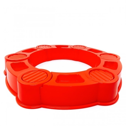 Складная песочница состоит из отдельных секций, которые оснащены сиденьями и углублениями для песка и игрушек. В конструкции нет острых углов. Может использоваться в качестве песочницы или сухого бассейна, размещается в помещении или на уличной территории.
