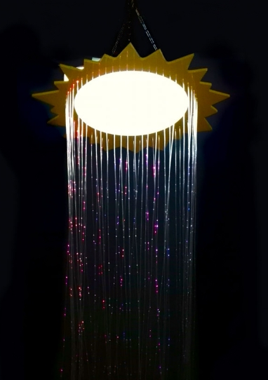 Фибероптический душ "Солнышко" имеет оригинальный дизайн, основание выполнено в виде светящегося солнышка с ярко-желтыми лучами. В лучики выведены светящиеся нити.