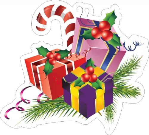 Стенд с изображением подарков впишется в обстановку празднично оформленного помещения. Картинка заламинирована.