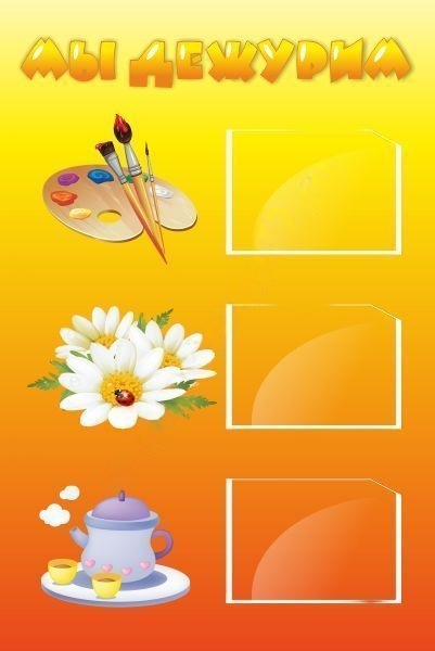 На данном стенде можно разместить фотографии или имена тех ребят, которые сегодня дежурят. Размещенная информация при необходимости легко обновляется. Соблюдение графика дежурств научит детей быть дисциплинированными и ответственными.