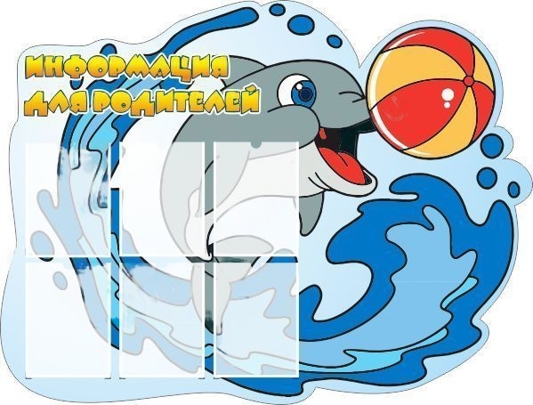 На выбор представлено два варианта оформления: с изображением девочки или дельфина с мячиком. На стенде предусмотрено шесть карманов формата А4 для размещения различных объявлений, плакатов, советов воспитателей и педагогов, распорядка дня, правил посещения детского сада.