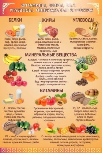 Стенд Витамины, жиры, углеводы, 600х900 мм