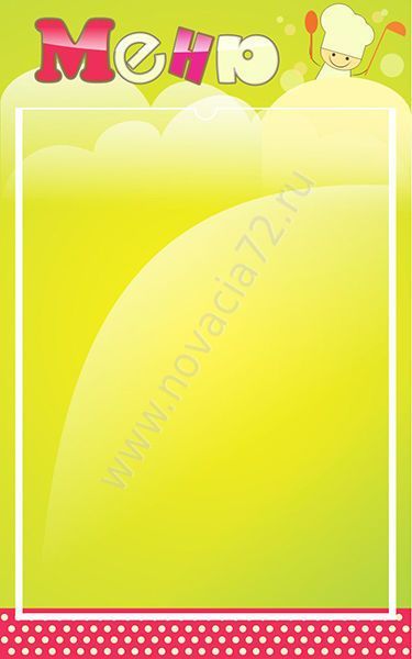 Стенд с изображением поваренка представлен в двух вариантах оформления. В удобном кармане формата А4 можно размещать меню на сегодняшний день. При необходимости информация легко обновляется.