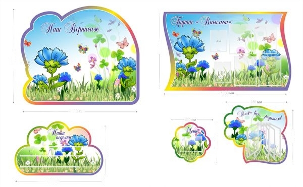 - стенд «Группа Васильки» (резной; 1300х800 мм; карманы А4 — 4 шт., А5 — 2 шт.);