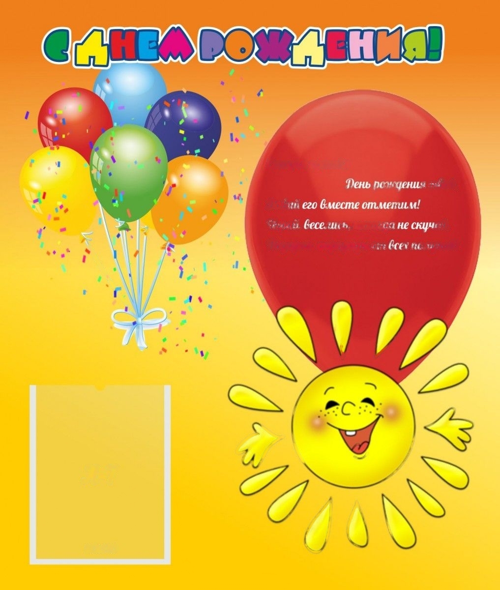 На красочном стенде написано поздравление и есть специальный карман для фотографии именинника.