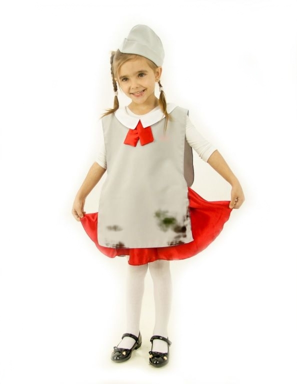 Костюм состоит из пилотки и накидки с воротником и галстуком, которая застегивается на липучку сбоку.