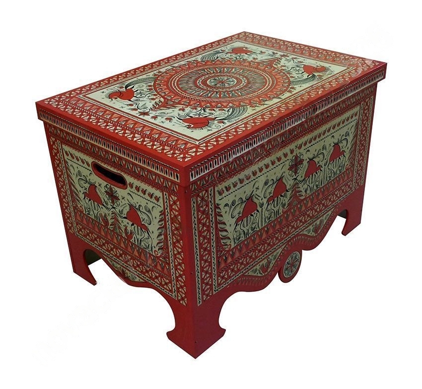 Сундук с художественной росписью - это многофункциональный предмет интерьера. Подойдет для хранения любых принадлежностей и игрушек, а также для демонстрации детям предметов русского народного творчества. Может стать интересной декорацией на спектакле или утреннике в детском саду или школе. Дополнит тематический уголок или станет украшением интерьера в художественной или театральной студии.