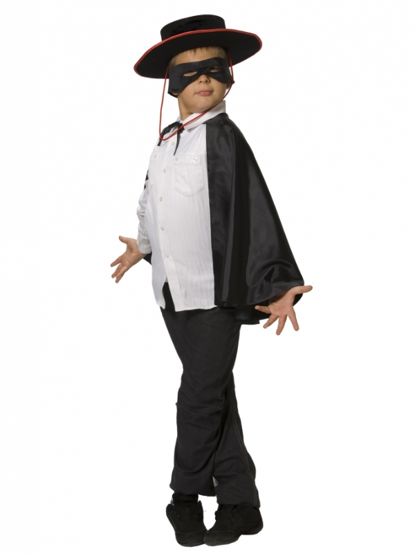 Образ таинственного испанского героя, несомненно, будет по нраву юношам. Карнавальный костюм может использоваться при проведении тематических театральных постановок и детских утренников в ДОУ и начальной школе.