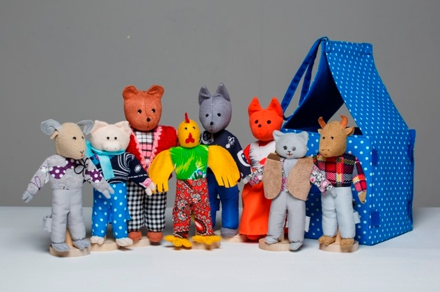 - 8 кукол: бык, поросенок, медведь, баран, петух, кот, лиса и волк.