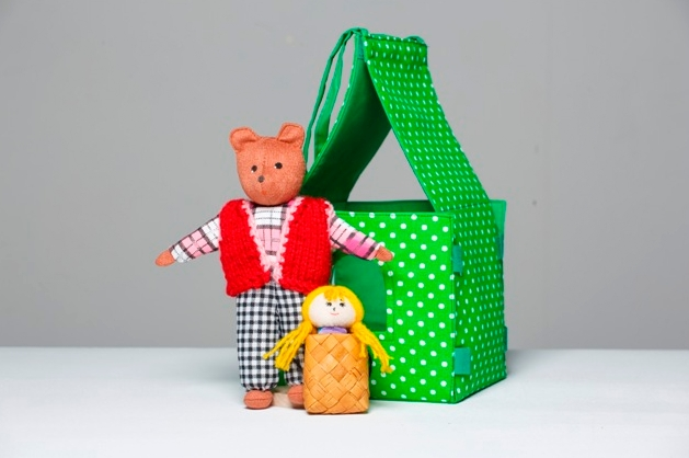 Крыша домика оснащается ручками. Декорация быстро собирается, дополнительно служит переноской для кукол.